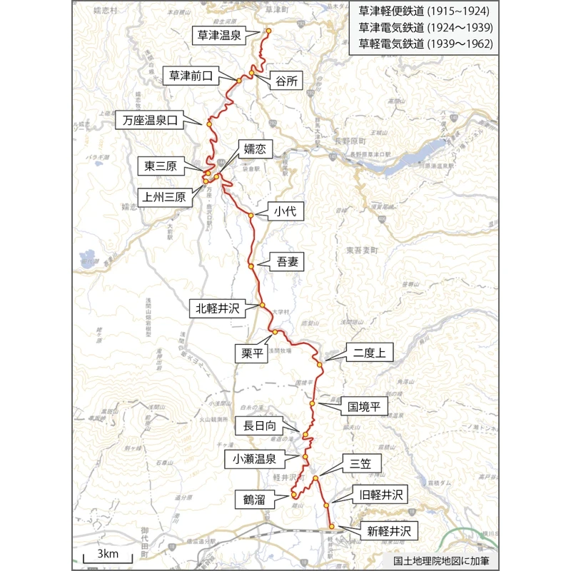 草軽電気鉄道は、長野県の軽井沢と群馬県の草津温泉とを結んだ鉄道で、1914年(大正3)から1926年(大正15)年にかけて、順次開業した鉄道である。