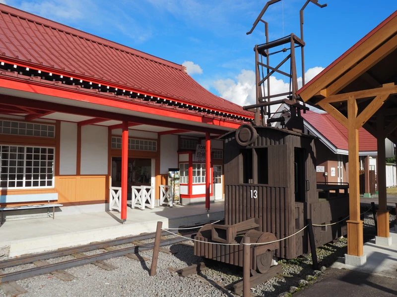 説明板によると、草軽電鉄は地元の住民や観光客にも利用されていたが、人だけでなく鉱山で採掘した硫黄の運搬にも使われていたそうだ。