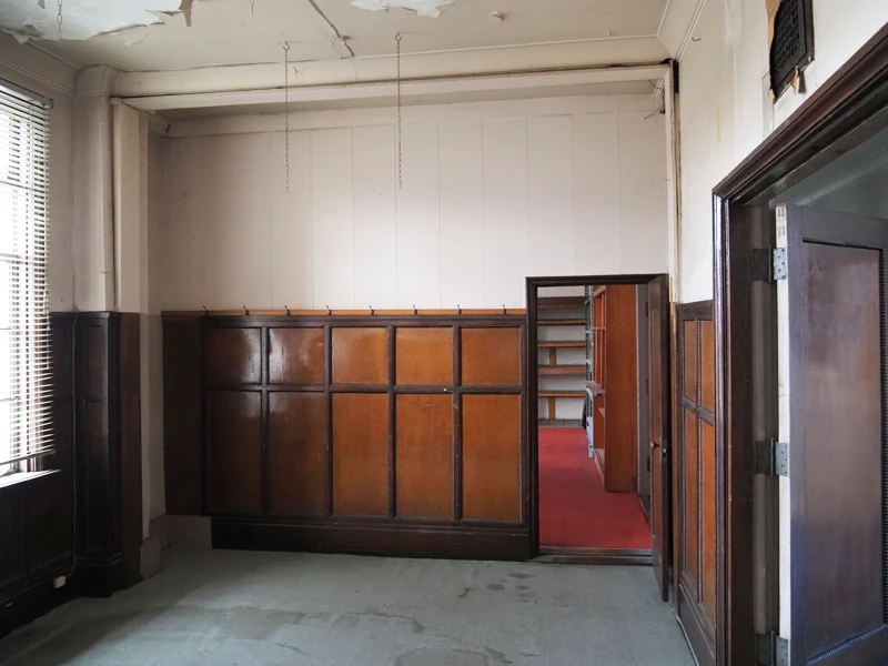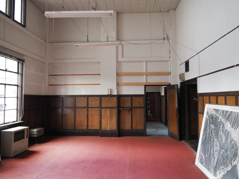 間仕切りで仕切られた部屋の内部。もともとはここも議場だった。