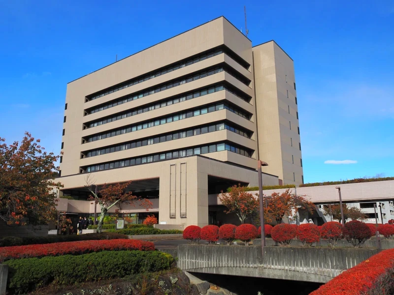 1987年(昭和62)、旧庁舎の北西に新たな市庁舎が完成した。設計は佐藤武夫設計事務所で、8階と9階部分が市議会議場になっている。