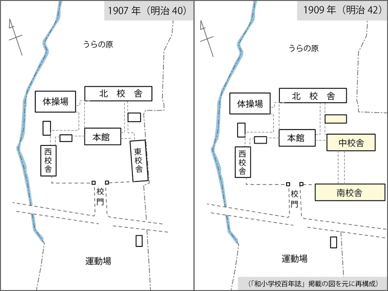 1901年(明治34)には政府は義務教育4年間の徹底を求めた。その翌年に、和学校は北校舎(特別教室4)と体育館を増築した。