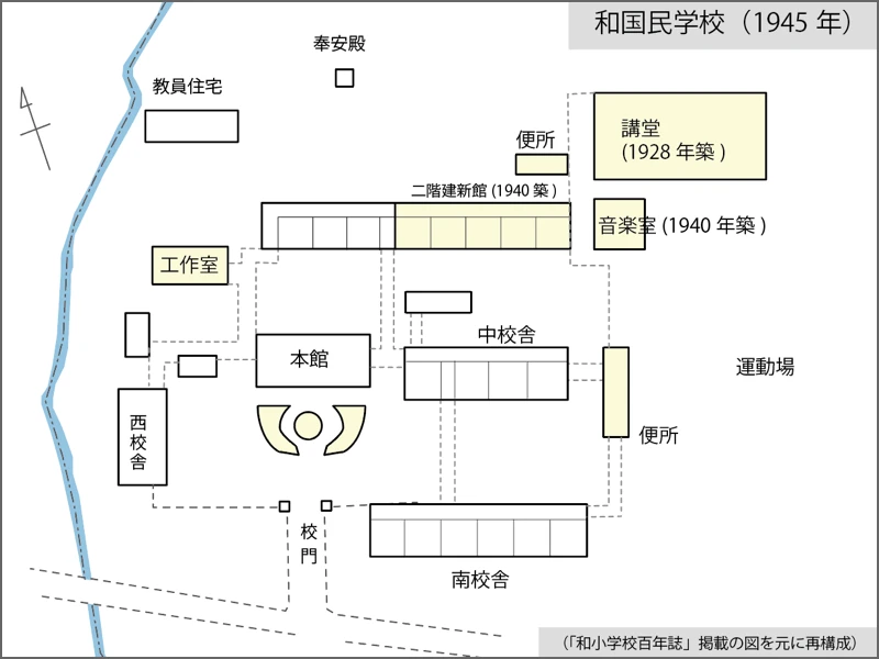 1940年(昭和15)北校舎の2教室を解体し、二階建ての新館と音楽室を建てた。また運動場が拡張された。