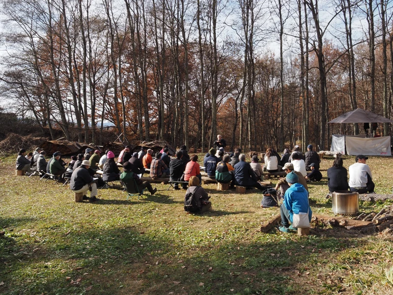 当日は活動報告や藤森照信氏の講演のほか、火起しや弓矢などの体験も行われていた。