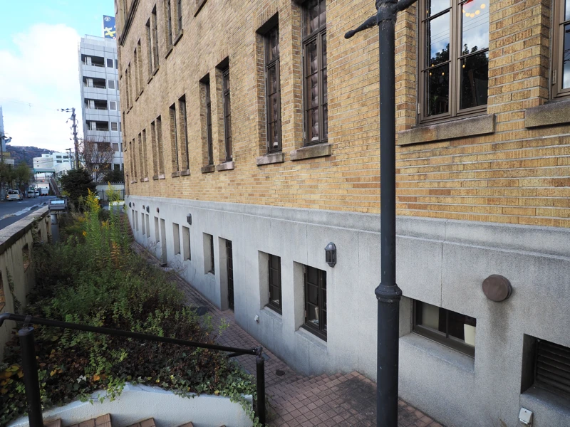 建物の南面は少し掘り下げてあり、地下1階部分にも窓がある。