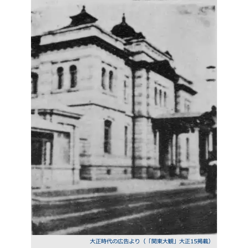 画質はちょっと悪いが、大正時代の川崎銀行水戸支店(及び石岡支店と柵町出張所)の広告に店舗の写真が使われていたので掲載する。
