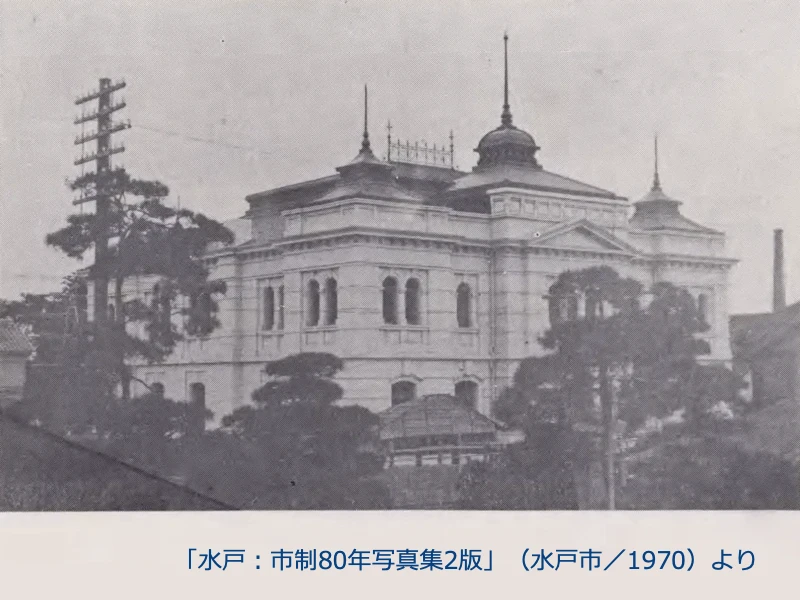 建物全体は写っていないが、屋根の形が分かる写真が「水戸:市制80年写真集2版」に掲載されていたので、引用する。