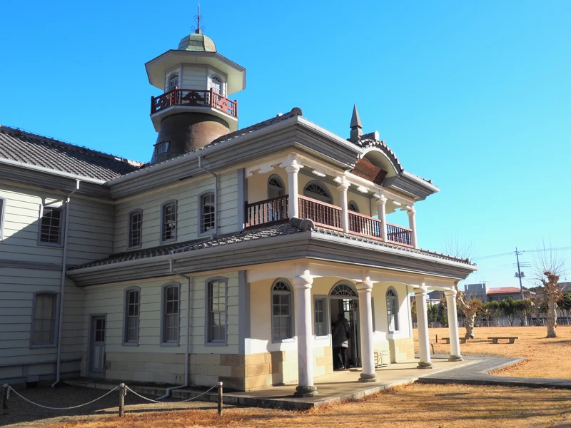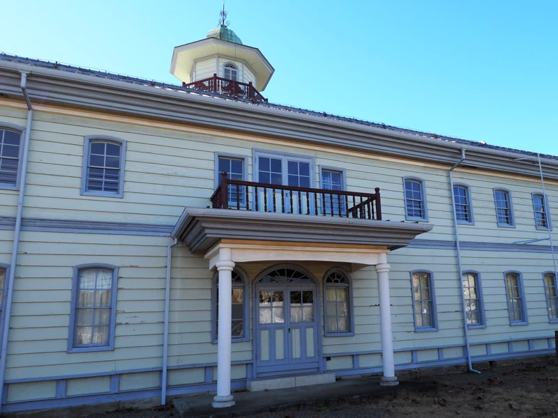 敷地にはいくつかの建物が移築・復元されている。今回はそのうちの一つ、旧水海道小学校本館を紹介する。