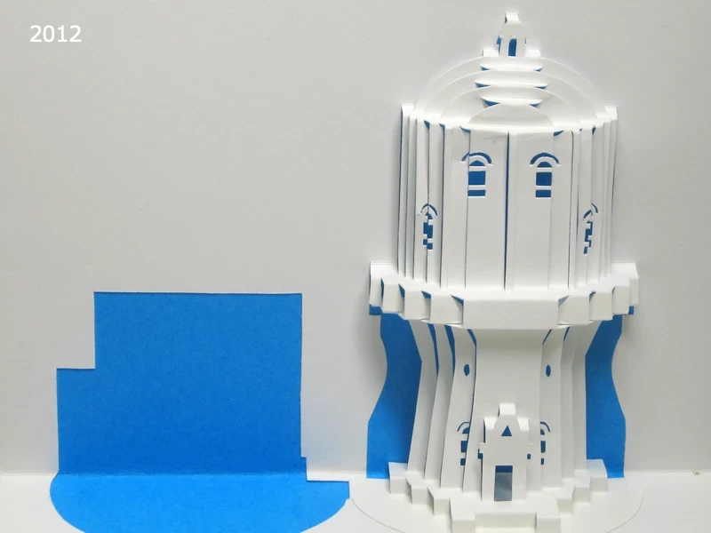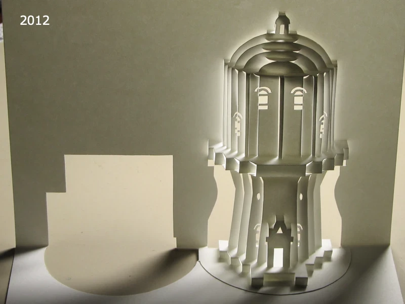 写真は、2012年に作成した水戸市低区配水塔のポップアップカード。