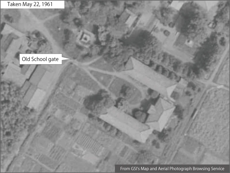Looking at even older aerial photo, one can see the location of the old school gate and pathways within the grounds. That said, this photo was also taken more than twenty years after the school relocated. The pathways were likely for the faculty housing.