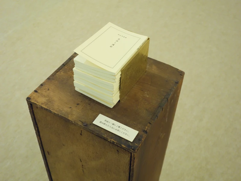 Paperback books like this were placed in the exhibition space. Visitors picked it up, read it, and walked around viewing the photos.
