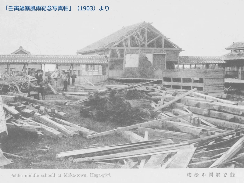 翌年出版された「壬寅歳暴風雨紀念写真帖」に、真岡中学校の写真も掲載されている。