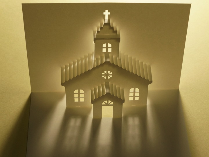 またまた、教会のポップアップカードです。以前も教会を作っているので、タイトルを「教会(2)」としました。
