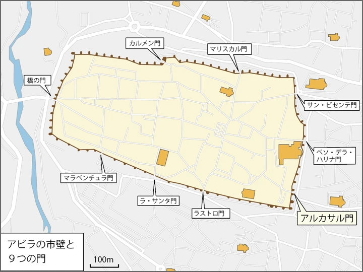 マドリードの西方にある都市アビラには11世紀末頃(あるいは12世紀)から建造され始めた城壁があり、城壁内の区域と城壁周辺の教会は世界遺産に登録されている。